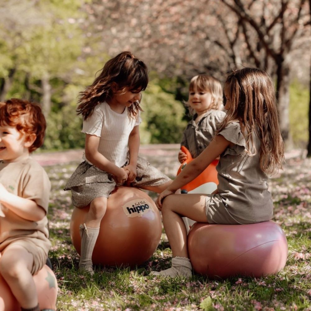 Åh det kilder så dejligt i maven at suse derudad på den kæmpe orange hoppebold med håndtag.