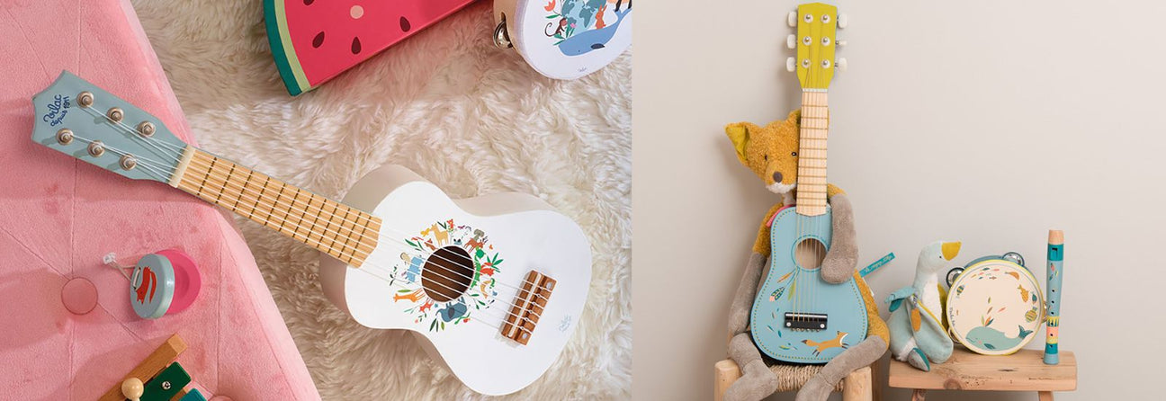 Find flot legetøjsguitar til børn hos Nordic Simply og lad dit barn snuse til rytme og toner. Se dem her.