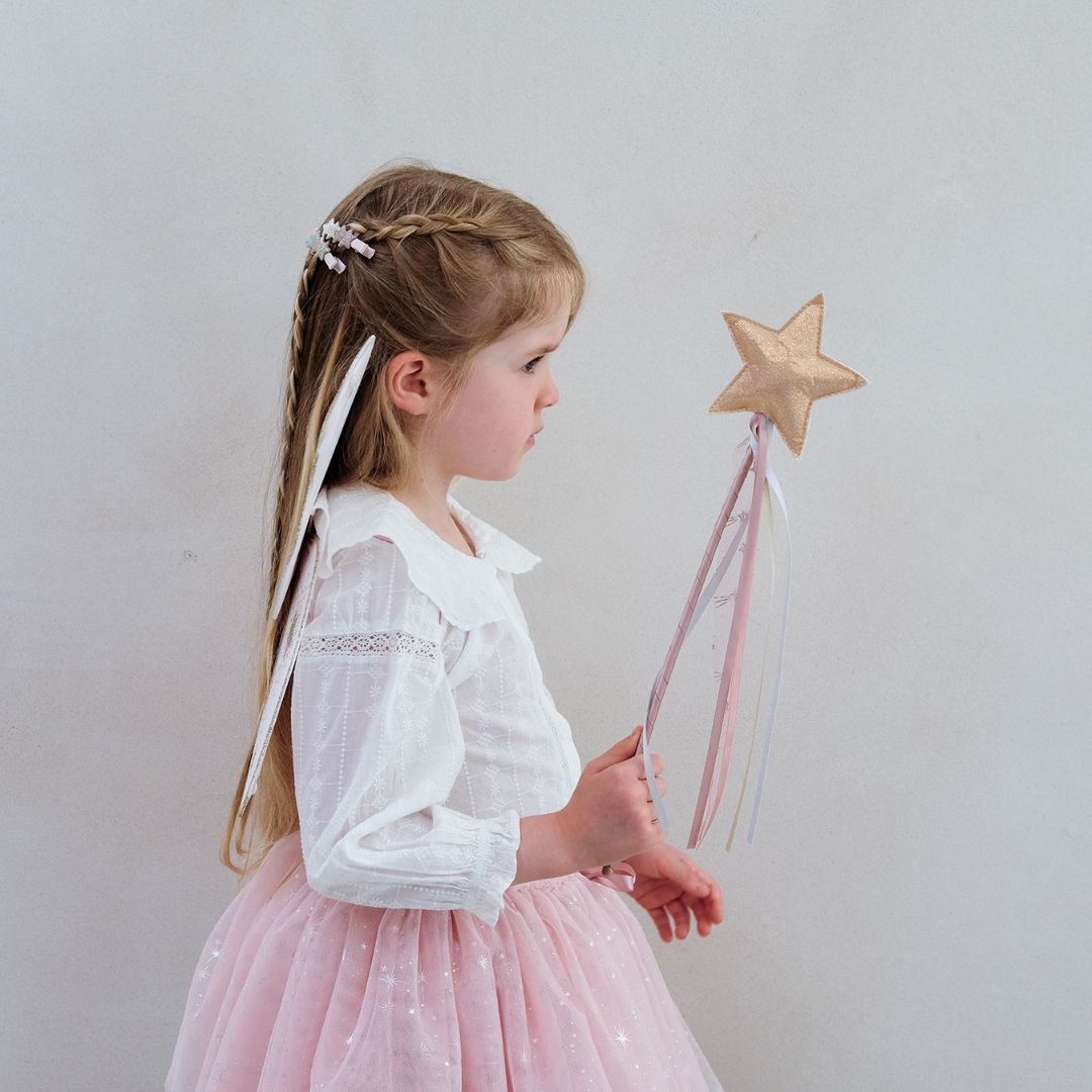 Tryllestav guld med satinbånd er bestilt og sendes så snart den er på lager